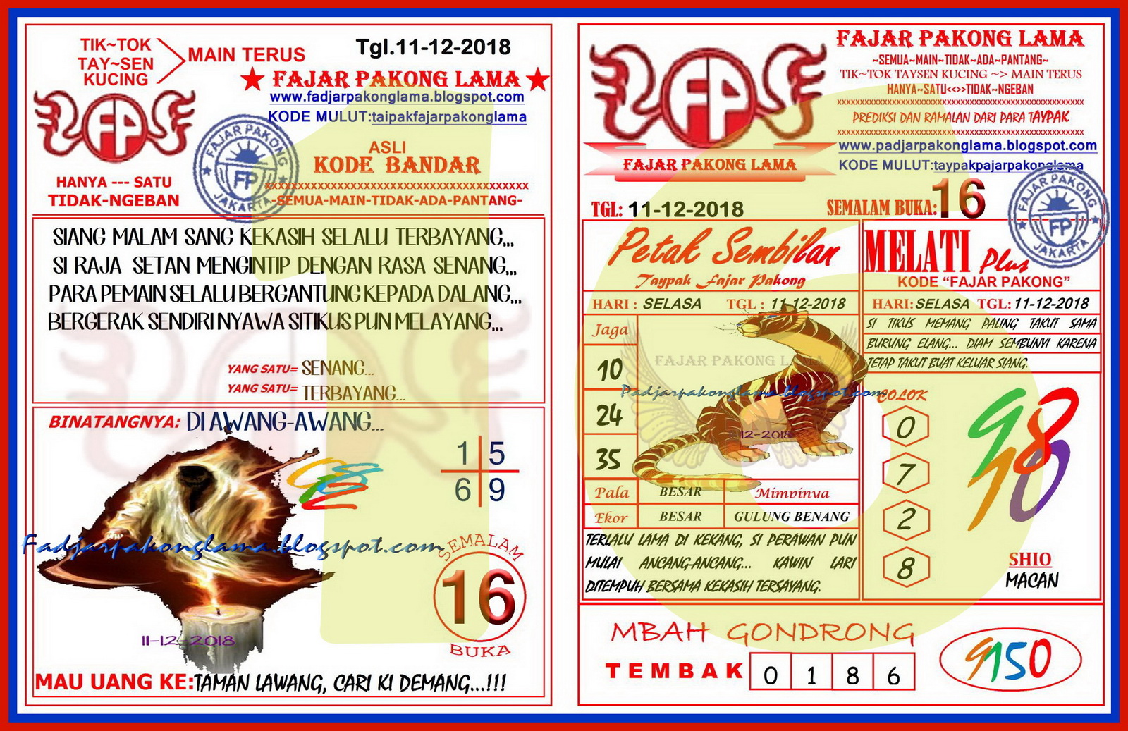'FAJAR PAKONG LAMA ASLI' Postingan. Tak ada apa pun di sini! Diberdayakan oleh Blogger Gambar tema oleh Michael Elkan. Laporkan Penyalahgunaan. Fajar Pakong Lama merupakan permainan menebak angka jitu yang banyak digemari yang dikenal TOTO GELAP Fajar Pakong, Tersedia berbagai jenis permainan tebakan angka yang dapat mainkan seperti 4D, 3D, 2D, Colok Bebas, Colok Bebas 2D, Colok Naga, Colok Jitu, Tengah, Kombinasi, Dasar, 50-50, Shio, Silang dan Kembang.
