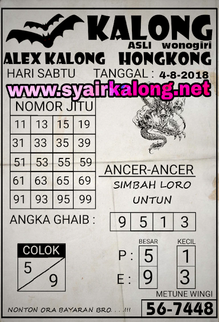 KODE SYAIR HONGKONG SABTU 4 AGUSTUS 2018 KODE SYAIR KALONG